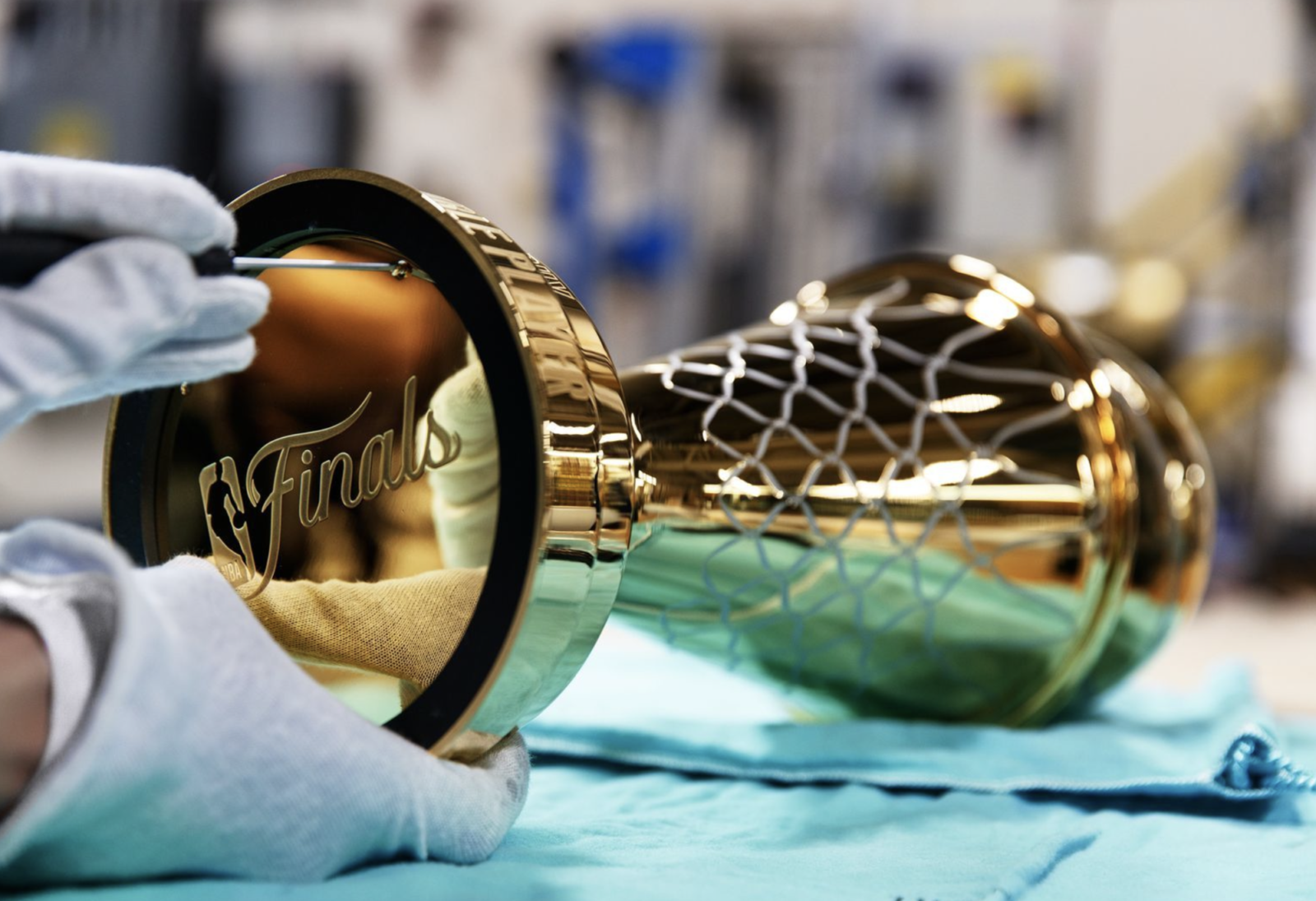 Introducido en 1977 y rediseñado en 2022, el trofeo Larry O’Brien de la NBA, celebra el legado y el futuro de la liga. El diseño muestra un balón de baloncesto de tamaño reglamentario al momento de entrar en una red. Su base cilíndrica de dos niveles incluye los nombres de todos los equipos campeones hasta la fecha.