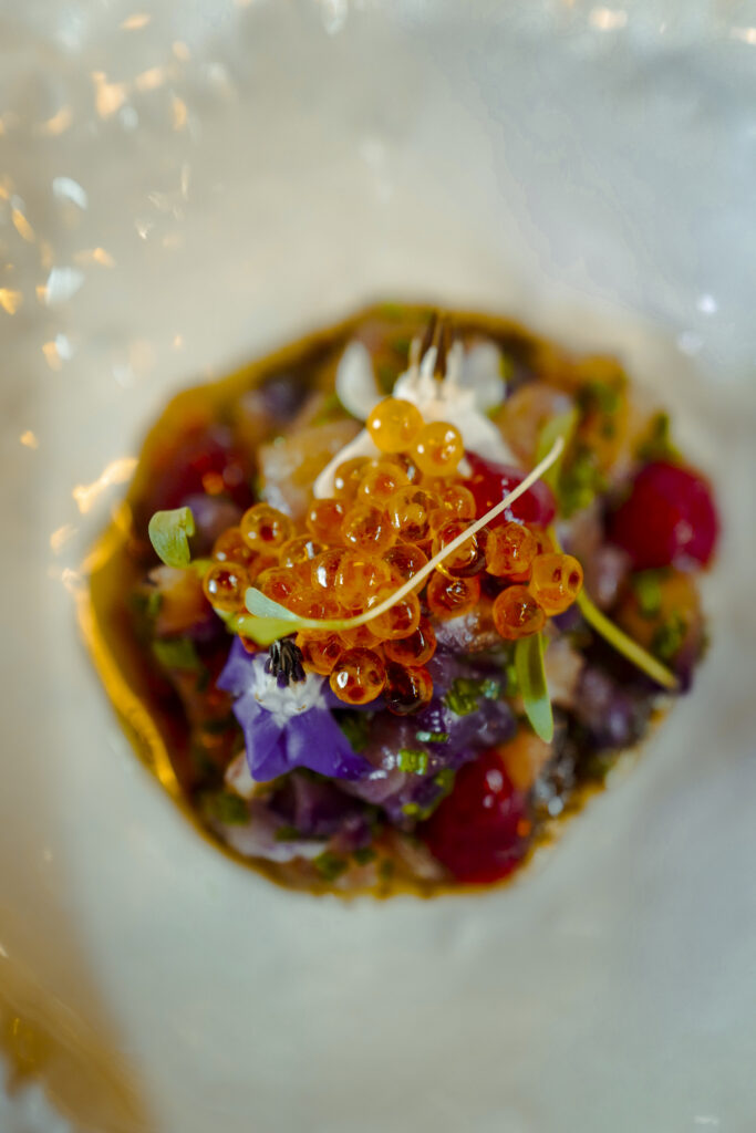 El enfoque de Grundey parte de una idea clara: la cocina como narrativa. Su concepto de private culinary theatre convierte cada servicio en algo irrepetible, donde el menú cambia según el momento, el contexto y el comensal. Hay una mezcla interesante de influencias mediterráneas, japonesas y europeas que se traduce en platos precisos, pero también emocionales. No es una cocina rígida, es una que se adapta, que respira.
