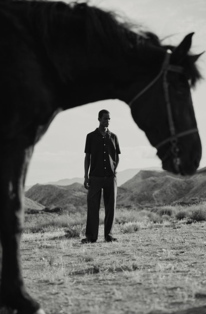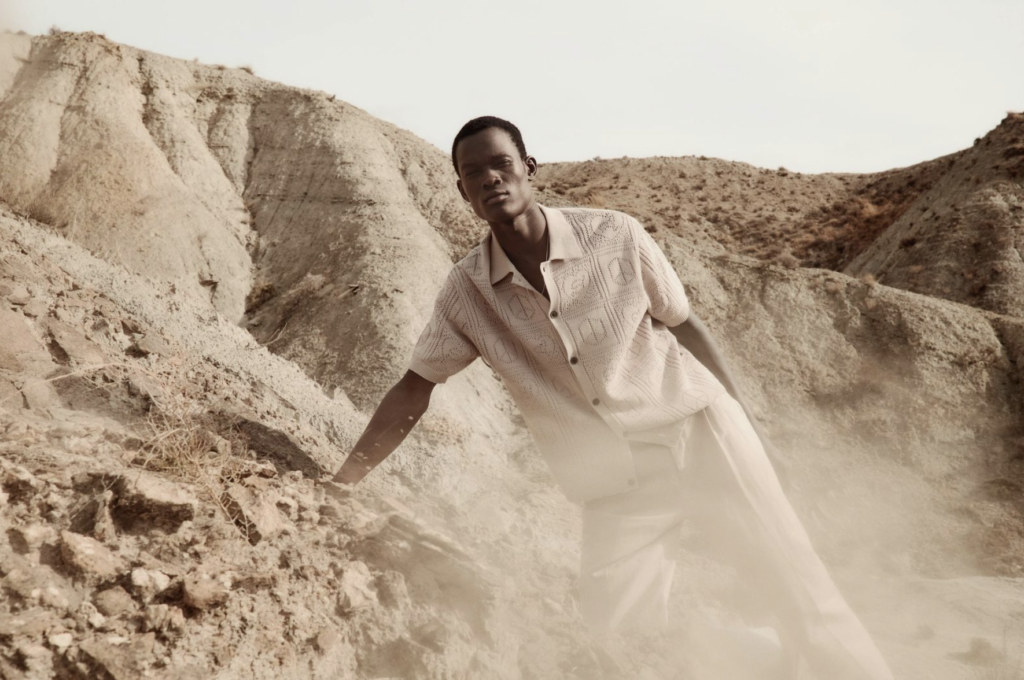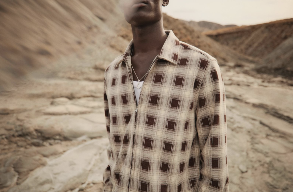 Para la línea masculina, Analogue Days apuesta por tonalidades apagadas, pañuelos al cuello artísticos y chaquetas de cuero vintage con herencia punk. Camisas con motivos gráficos y sastrería smart-casual evolucionan la estructura clásica hacia un estilo desenfadado, listo para mezclarse.