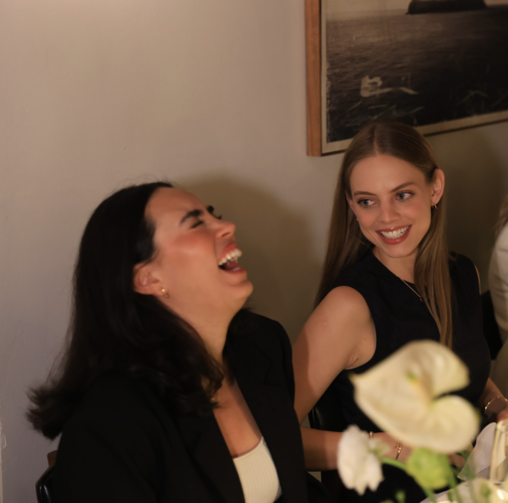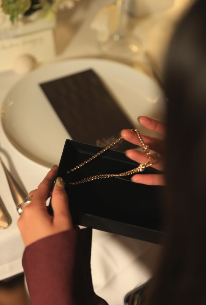 Durante la celebración de Aleví Milano, los brindis marcaron algunos de los momentos más especiales de la noche. Copas alzadas, sonrisas espontáneas y conversaciones cercanas acompañaron una cena donde el lujo se vivió desde la calidez y la complicidad entre las asistentes.