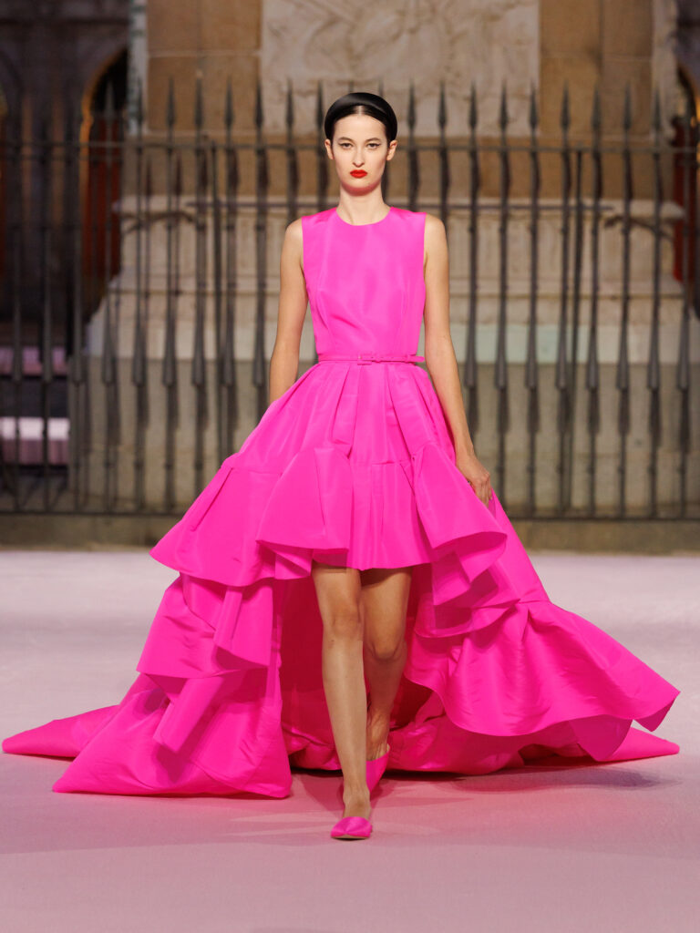 La Plaza Mayor de Madrid se transformó en una alfombra rosa de 450 metros para el desfile de Carolina Herrera en Madrid . En lugar de un salón cerrado o backstage con cortinas, el corazón de la ciudad fue testigo de una colección Primavera-Verano 2026 que combinó historia, moda y herencia española. Un tributo a Madrid y a la firma bajo la dirección de Wes Gordon.