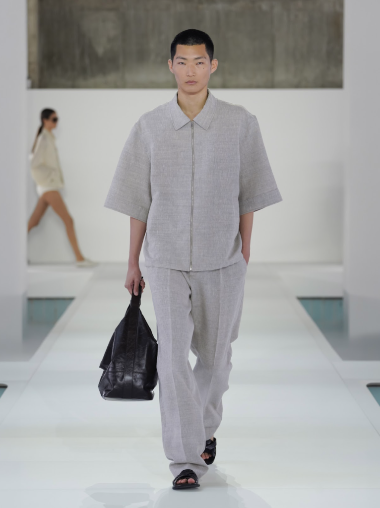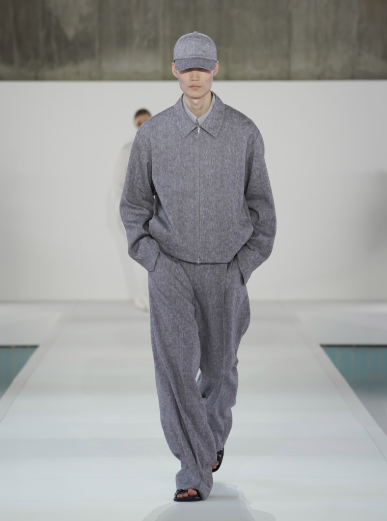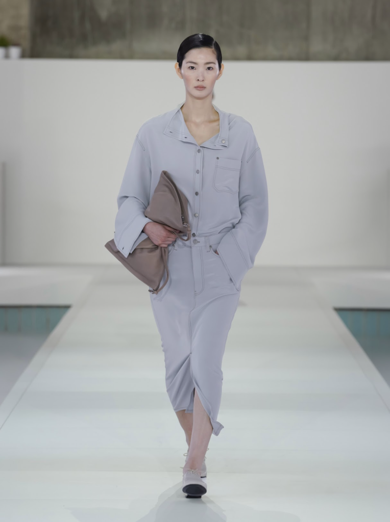 COS presentó su colección Primavera-Verano 2026 en Seúl, marcando su debut en pasarelas coreanas tras giras europeas y cuatro ediciones en New York Fashion Week. El desfile se montó en antiguas piscinas abandonadas, transformadas en un espacio surrealista de brutalismo moderno. Con un soundtrack del metro de Seúl y neblina etérea, los 40 looks de COS desfilaron con elegancia, dominados por grises pizarra, marrones cálidos, cremas y blancos, acentuados en azul y rojo oxblood.