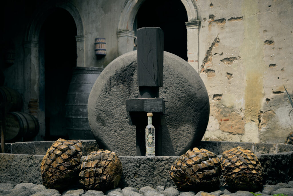 Lo que hace aún más excepcional a Dobel Tahona es su perfil sensorial. Un tequila brillante, con destellos platinados que son muestra de su pureza. Es un tequila que se disfruta sin prisa, solo, en las rocas o en un vaso corto, porque fue creado para mostrarse tal cual es: honesto y fiel a la tierra que lo vio nacer. Esa honestidad viene de su proceso, uno que respeta la tradición hasta en sus detalles milenarios. La producción se realiza en pequeños lotes, siguiendo un método ancestral donde la tahona, una enorme rueda de piedra volcánica, prensa lentamente el agave cocido tras una cocción suave y un reposo paciente. Cada botella es numerada y firmada por el maestro tequilero, como prueba del cuidado artesanal detrás de cada gota.