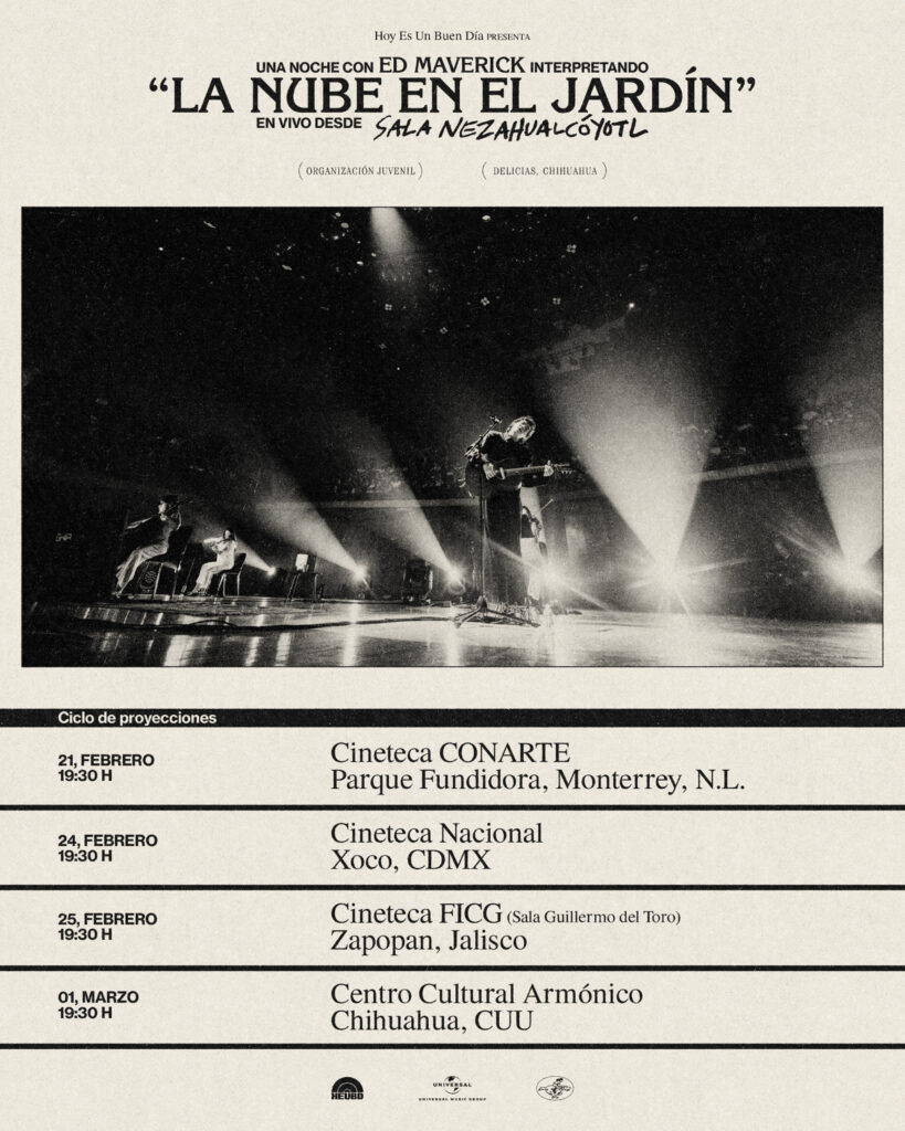 Hay regresos que no se anuncian con estruendo, sino con honestidad. El de Ed Maverick fue así: íntimo y profundamente humano. Ahora, esa noche queda inmortalizada en “La Nube En El Jardín En Vivo desde La Sala Nezahualcóyotl”, un documental que tendrá cuatro proyecciones únicas en el país.