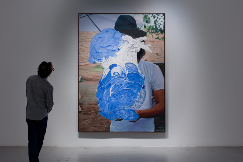 Con su exposición en VETA Galería, Sarabia se basa en lo personal, en lo presente, en lo colectivo: esconder caras para remover estereotipos