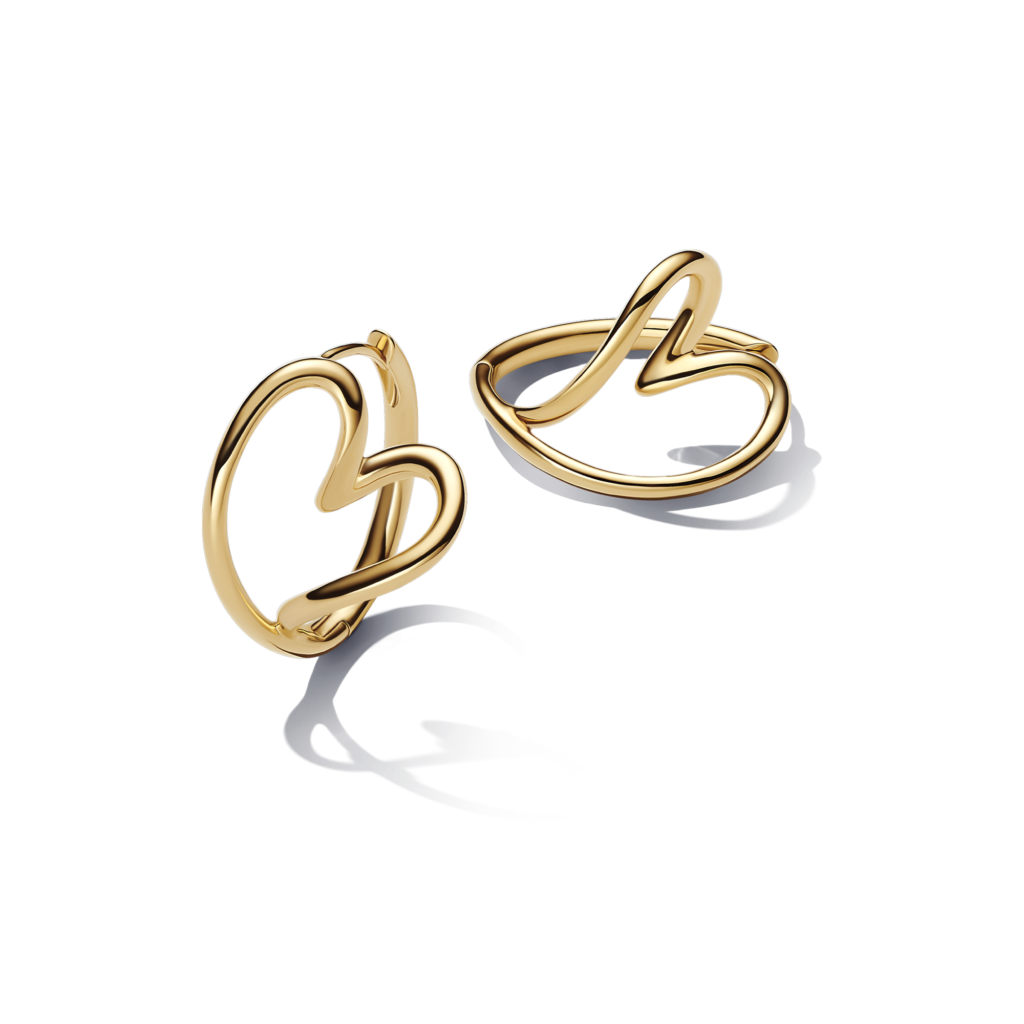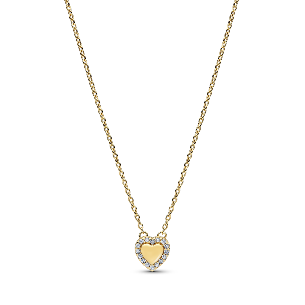 Existe una selección de joyería en forma de corazón que Pandora presenta como parte de sus colecciones permanentes, en plata esterlina con distintos acabados, como el baño de oro de 14k.