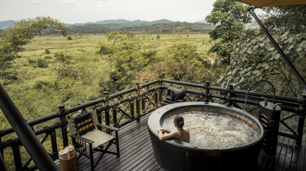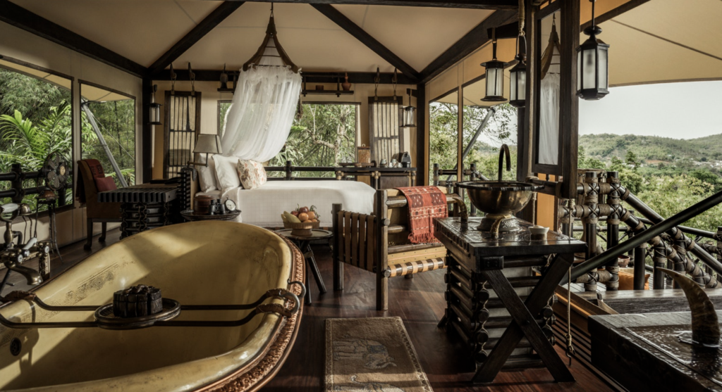 El Four Seasons Tented Camp Golden Triangle, cumple 20 años desde su apertura en 2006 como un proyecto pionero de lujo con propósito. Inspirado en la estética exploradora de Bill Bensley, integra materiales naturales, antigüedades y artesanía local en terrazas abiertas que dialogan con la selva y el río Ruak. Más que un alojamiento, ofrece aislamiento elegante con vistas a Laos y Myanmar.