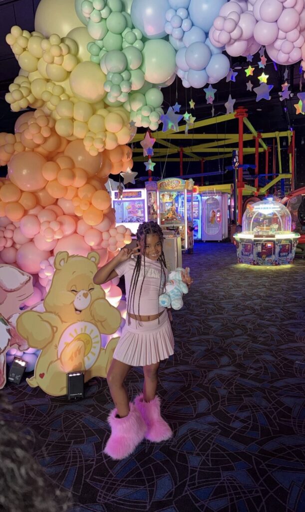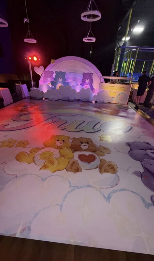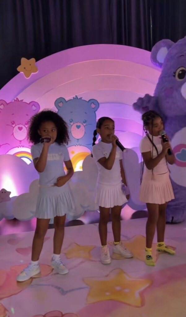 La temática de la fiesta fueron los Care Bears y estuvo repleta de detalles como una estación de joyería para niñas, otra de slim y hasta una pista de baile en la que junto a sus primas Kardashian, True cantó y bailó.