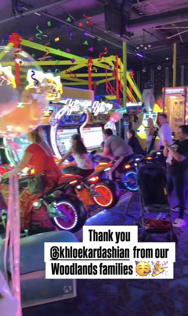 “True decidió compartir su cumpleaños. Rentamos el lugar por varias horas y la segunda mitad la otorgamos a Hope the Mission, la mayor fundación de rescate de infancias en Estados Unidos, para que los niños pudieran disfrutar del lugar y pasar un buen rato y vivir la misma experiencia que True y sus amigos tuvieron”, expresó Khloé a través de sus redes.