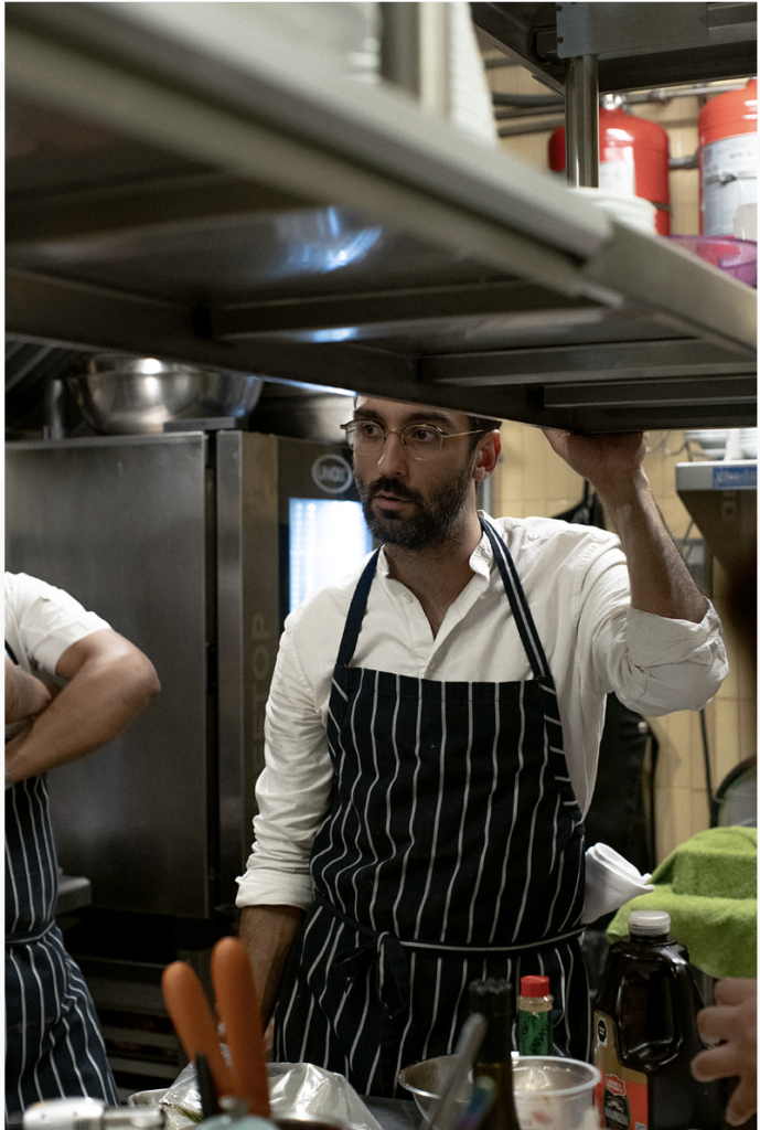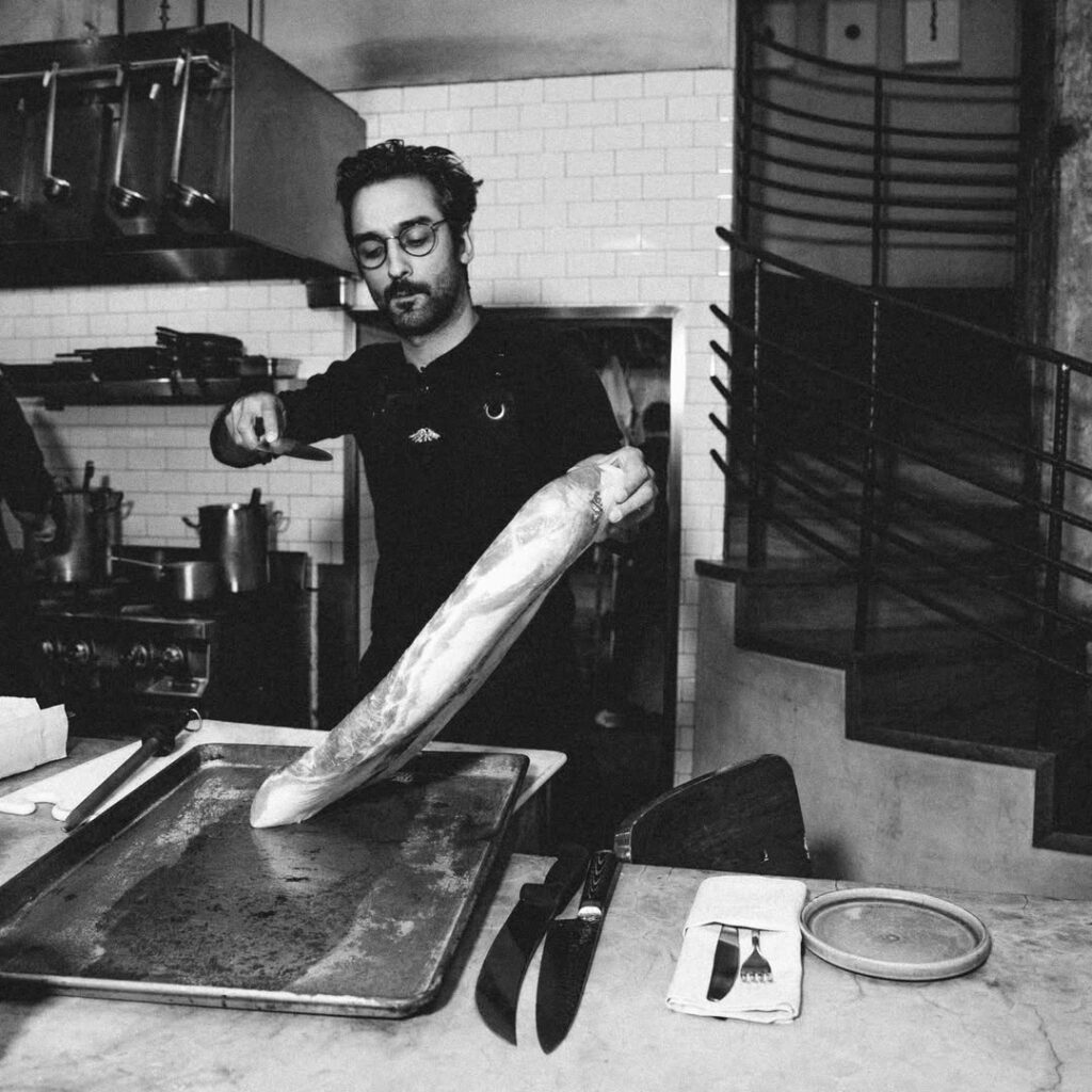 The Lamb surgió después. Conocí a Poppi en Marmota cuando abrimos y ella era la chef; el clic fue inmediato. Ella ahora es mi esposa y tenemos un hijo. El proyecto de The Lamb fue algo romántico porque representa nuestra relación y la unión de nuestras culturas y gastronomías. Poppi es británica y el restaurante representa la región de donde es ella. Cuando nos comprometimos, fuimos a Italia y luego a Inglaterra. Me sorprendió la calidad de la comida inglesa de campo, la cacería, los lácteos y los vinos blancos de Kent. Quisimos aportar nuestro granito de arena para mostrar que la comida inglesa es interesante. Fue un reto ambicioso porque la gente no estaba pidiendo precisamente un restaurante inglés en la Roma, pero decidimos hacerlo.