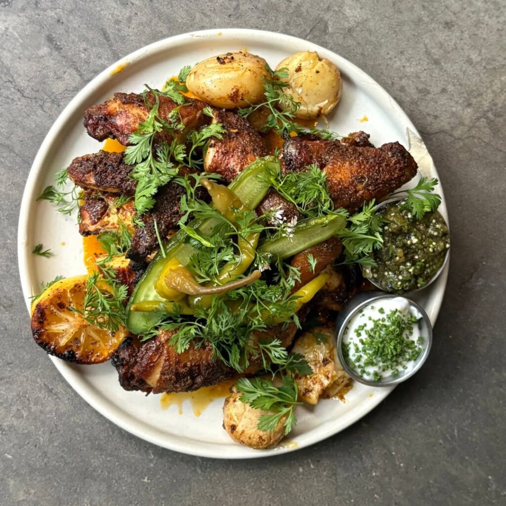 La plática terminó, y continuó, cuando llegaron los ostiones, la ensalada César, la burrata con esquites y el pollo a la leña. Una cosa fue poder platicar con Federico, y otra ver cómo toda su esencia se transporta directamente a los platillos de Marmota. Solo me queda decir que sigo pensando en ese pollo a la leña.