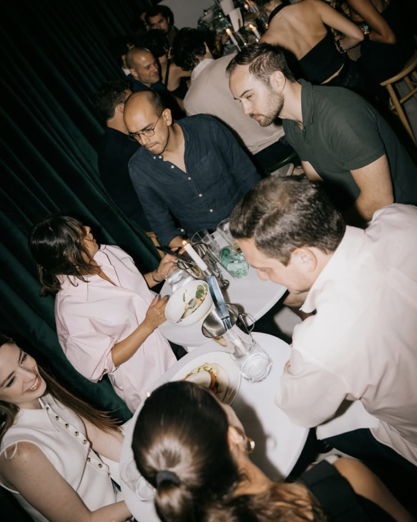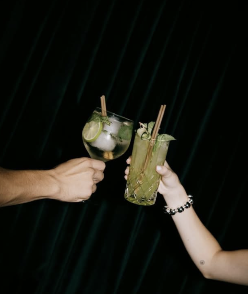 Por la noche, el espacio cambia completamente de ritmo y se transforma en bar. La música sube y el mismo lugar que por la mañana recibió runners se convierte en un punto social de la ciudad.