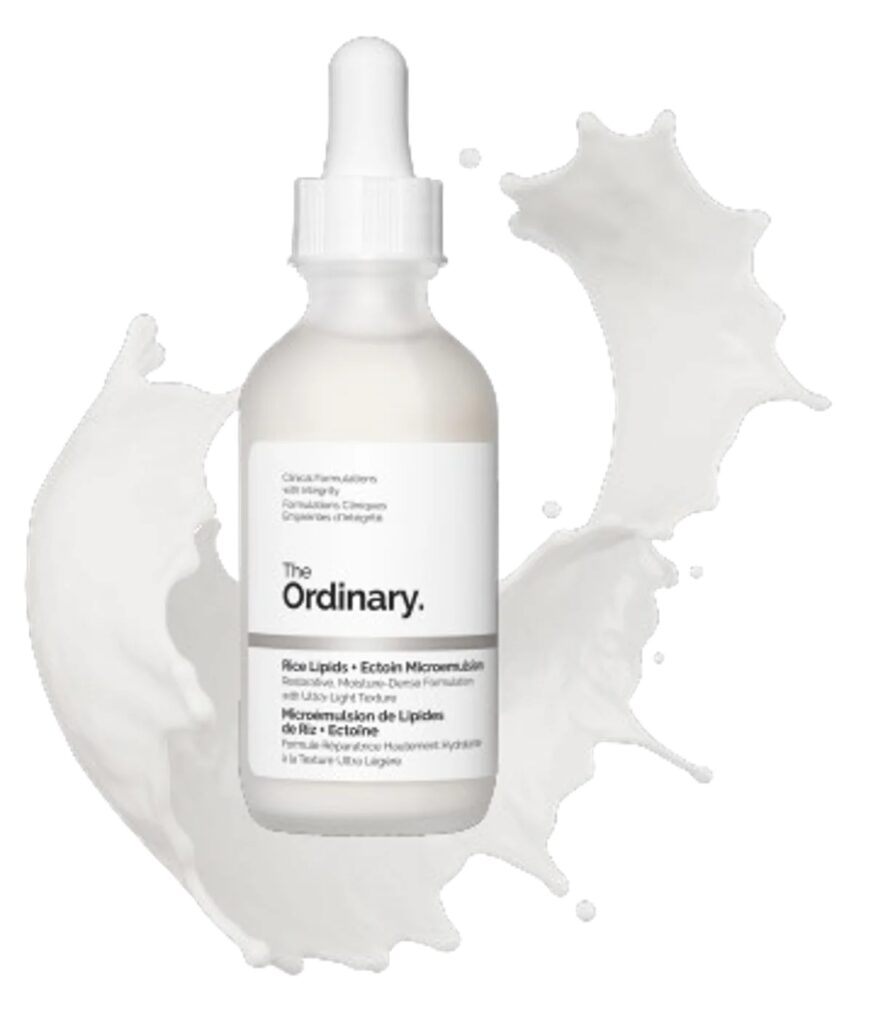 Últimamente las texturas lechosas han ganado popularidad gracias a la sensación ligera que tienen, pero casi todas asociadas a tónicos o sueros. The Ordinary redefine el último paso de la rutina de skincare, creando la misma textura en Rice Lipids + Ectoin Microemulsion, como un hidratante.