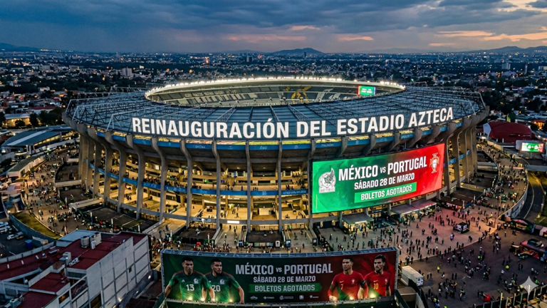 El Estadio Azteca se reinaugura el 28 de marzo con el amistoso entre México y Portugal, marcando su regreso oficial tras más de dos años de remodelación. Ícono de 60 años de historia y escenario de dos Copas del Mundo, se prepara para albergar por tercera ocasión un mundial con mayor comodidad.