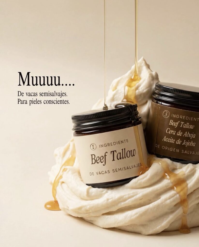 Una visión más ancestral del cuidado de la piel. Esta marca no es muy conocida, pero se distingue a otras por rescatar el uso del sebo de res, utilizándolo como su ingrediente principal. El beef tallow se ha vuelto viral, gracias a sus beneficios que promueven una cosmética minimalista y profundamente nutritiva. Su enfoque se basa en el aprovechamiento de recursos y en evitar al máximo ingredientes sintéticos innecesarios.