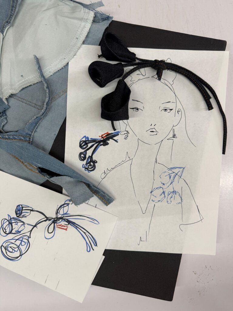 Fue algo muy natural. El denim ya tiene una función muy clara, entonces quisimos llevarlo a un lugar inesperado. La flor aparece casi sola en nuestro proceso creativo; es una forma de hablar de transformación, de cuidado y de sensibilidad sin decirlo con palabras.
