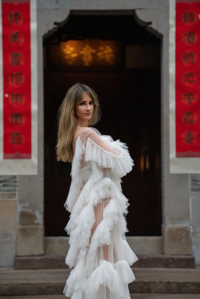 En el enclave único de Amanyangyun, un complejo construido a partir de edificaciones históricas rescatadas y preservadas, la moda sostenible de María La Fuente encuentra un escenario que amplifica su discurso creativo. Cada diseño dialoga con el entorno desde el respeto, estableciendo un equilibrio sutil entre tradición y contemporaneidad.