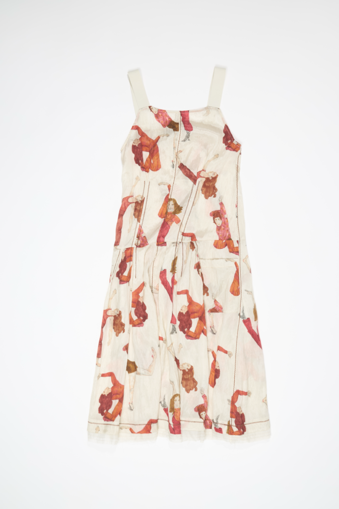 La danza enseña que el baile es tacto y fluidez, inspirando texturas: vestidos drapeados como velos en caída libre, stretch que abraza, tules traslúcidos que revelan capas como en una performance. Guiños a la infancia sensorial: cintas bordadas y costuras táctiles recuerdan que el baile es nuestro primer encuentro con el arte expresivo.