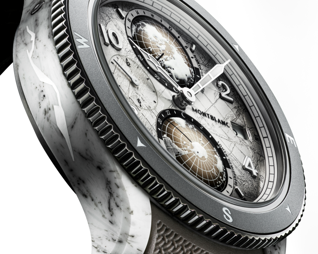 El nuevo Montblanc redefine el concepto de aventura. Inspirado en la montaña más alta de Europa, este reloj incorpora ceniza volcánica en su estructura, llevando la narrativa natural directamente a la muñeca. No solo destaca por su estética, sino por su funcionalidad: doble huso horario, complicación de hora mundial y tecnología sin oxígeno que optimiza su rendimiento en condiciones extremas.