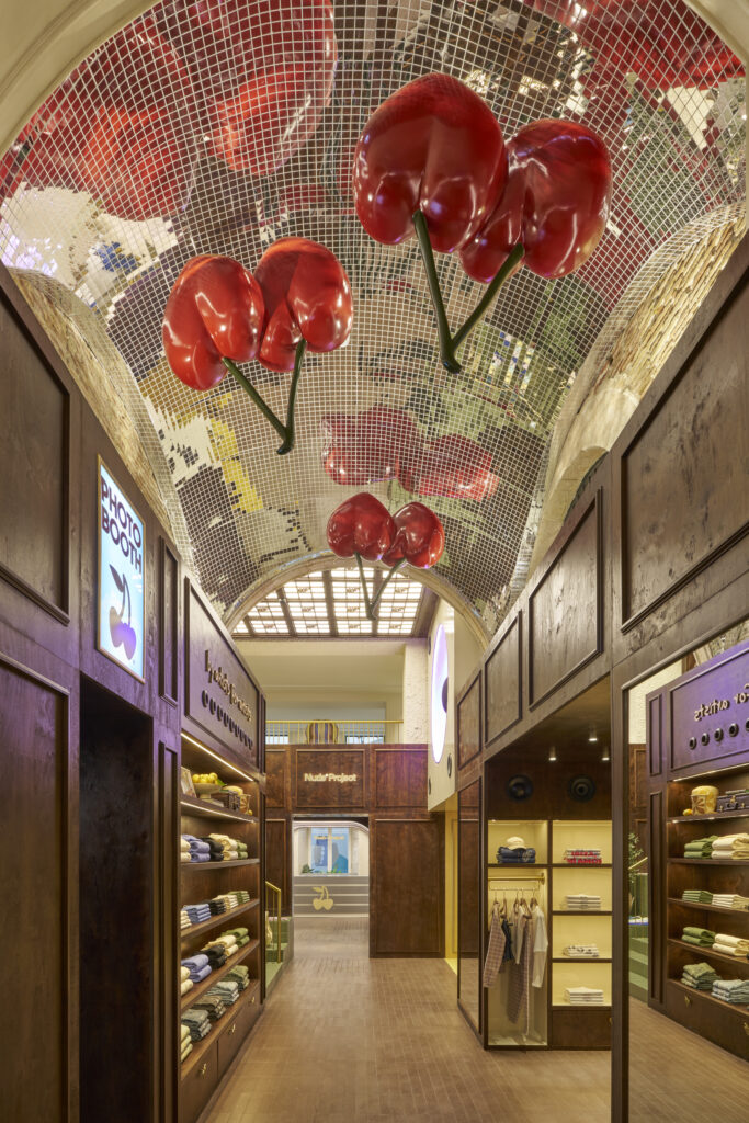 La propuesta de Nude Project redefine el layout tradicional. La planta baja funciona como una extensión de su universo creativo, mientras que el segundo nivel se convierte en un espacio dedicado al arte contemporáneo, curado por Urvanity Projects.