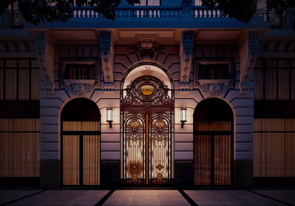 Después de más de cinco años de obras, la Metrópolis reabre como Club Metrópolis. El interior se ha transformado por completo y ahora alberga un hotel boutique de 19 suites, varios espacios gastronómicos y un club privado internacional distribuidos en sus ocho plantas.