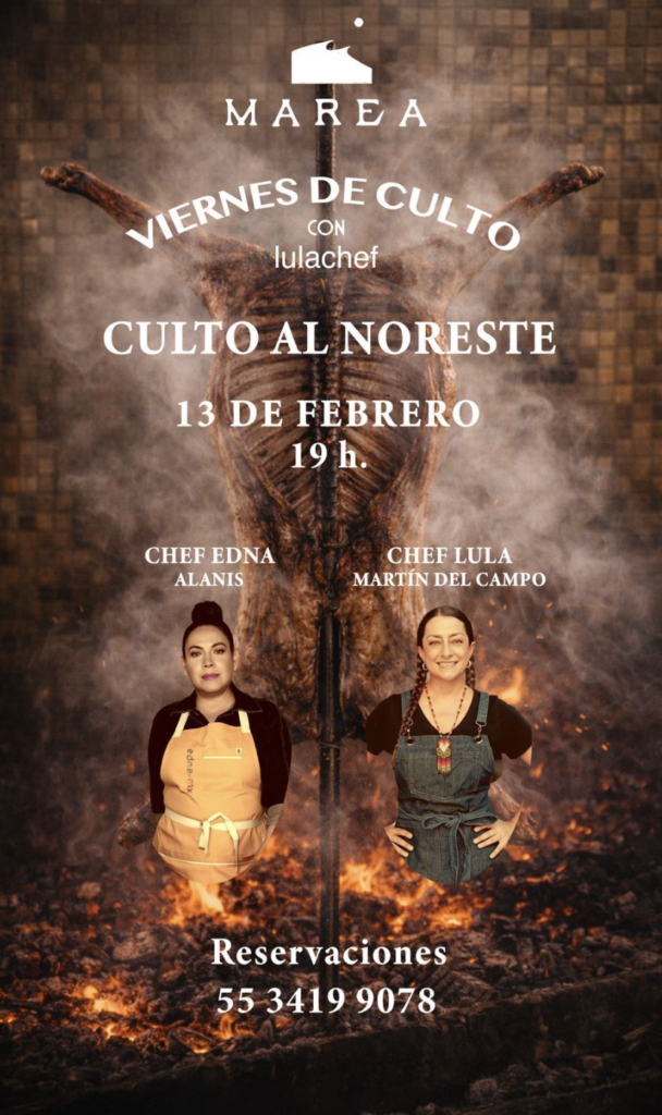 En el restaurante Marea de la Roma, Lula Martín del Campo y Edna Alanís unen fuerzas este viernes 13 de febrero para una noche de sabores norteños. Un menú a la carta reinterpretará tradiciones del noroeste con liderazgo femenino al frente.
