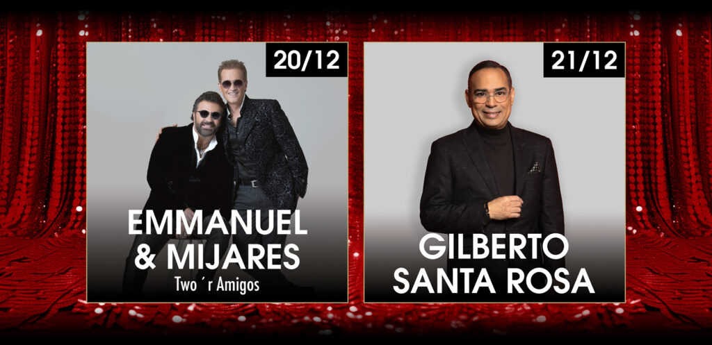 El sábado 20 de diciembre, Emmanuel & Mijares llegan con su espectáculo TWO’R AMIGOS, un show que reúne himnos pop como “Soldado del Amor”, “La Chica de Humo” y “Bella Señora”. Una experiencia diseñada para cantar, bailar y emocionarse..