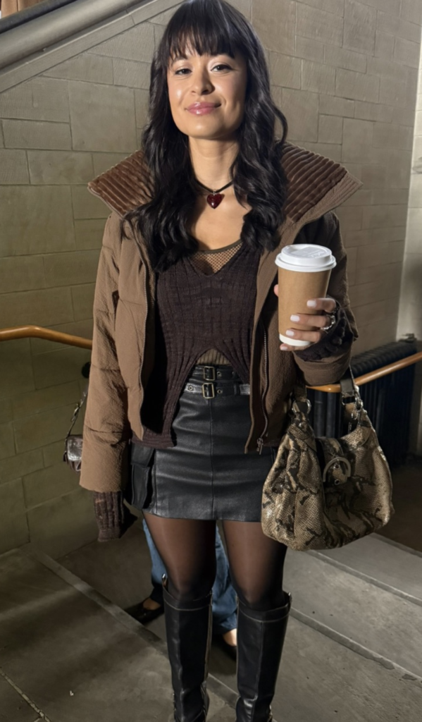 El emblema Y2K regresa en capas: Bree domina con bombers oversized y bufandas tejidas que evoca romaticismo eterno, Pippa mezcla cropped utility jackets sobre tops ribbed y minifaldas de cuero para textura, mientras Lucy simplifica con tops y jeans bootcut relajados, más abrigos con colgantes delicados.