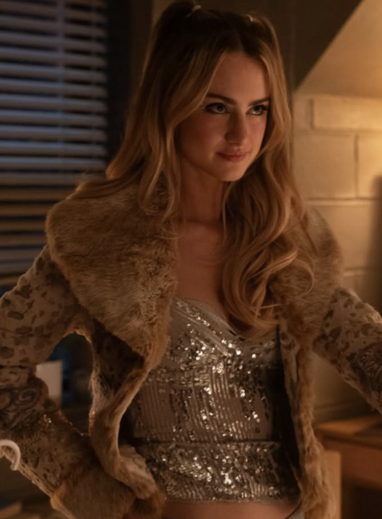 Grace Van Patten interpreta a Lucy Albright en Tell Me Lies temporada 3, vistiendo un conjunto Y2K diseñado por Charlotte Svenson.