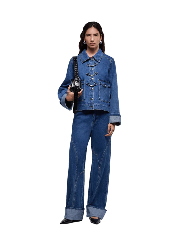 Laagam sigue explorando el poder de los sets con identidad. Su Denim set, inspirado en las chamarras napoleónicas, mezcla estructura y feminidad en partes iguales. Detalles metálicos, hombros marcados y un fit que redefine el tailoring femenino