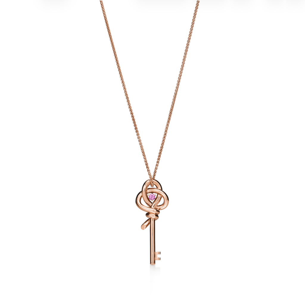Con motivo de la celebración del Año Nuevo Chino, Tiffany & Co. se complace en presentar el nuevo collar de llave Tiffany Knot en oro rosa de 18 quilates, engastado con un zafiro rosa.