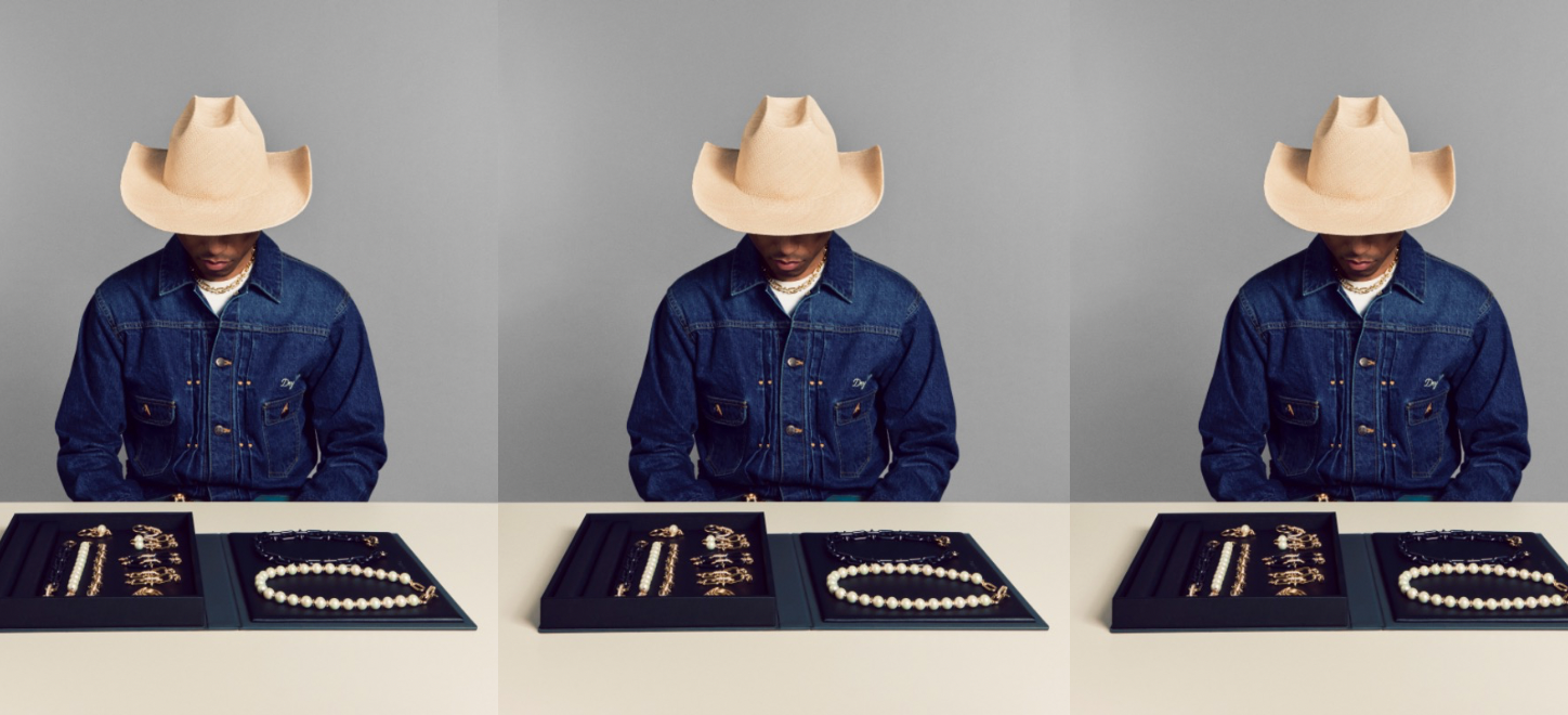 Como sabemos, Pharrell es uno de los íconos más importantes de la cultura pop y del siglo XXI. Su trabajo como productor en la industria musical y su legado como diseñador, sucediendo a Virgil Abloh como director creativo de Louis Vuitton, lo han posicionado como una deidad creativa (we may be exaggerating a bit). Claro que la firma, icónica por sus exuberantes diseños con diamantes y su largo legado en la historia de la joyería, se unió para realzar el talento de Williams.