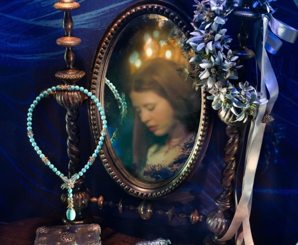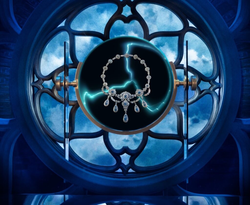 La instalación recreó la ventana del laboratorio de Frankenstein, capturando escenas clave de la película con el sello distintivo de Tiffany & Co., acompañadas por una cuidada selección de joyas del Archivo de la marca, que fueron usadas en la película por Mia Goth.