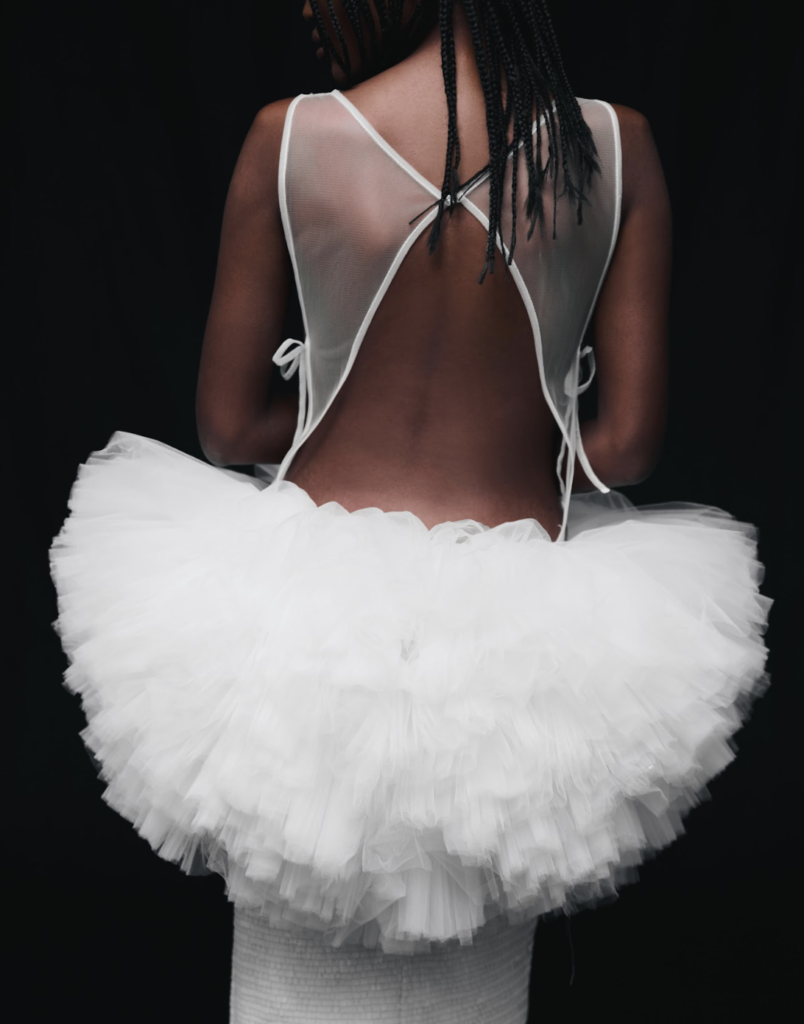 La paleta cromática de ULTRA VOYAGE emula el mar en distintas horas: blancos arena, platas, azules cobalto, rosas coral y negros abisales. Texturas como raso, encaje, plumas, denim y algodón logran un equilibrio entre opulencia y vanguardia urbana, haciendo de cada prenda un objeto de deseo.